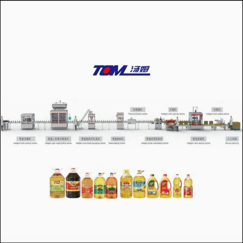 Esta línea es adecuada para el relleno de productos de aceite comestible con especificaciones de 1L-5L